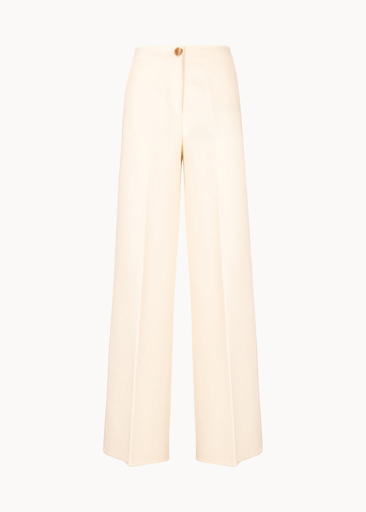 Inspired by a woman who challenged the skies and conventions, paving the way for those who followed with courage and determination. A pioneer who flew beyond all limits, becoming a symbol of freedom and audacity.These men’s trousers in wool double cloth, with a straight, wide cut and high waist, blend comfort with authority. Pressed pleats and classic pockets reinterpret sartorial codes with style, while handmade finishes highlight artisanal quality. A garment that celebrates resourcefulness, elegance, and the courage of those who dare to soar.