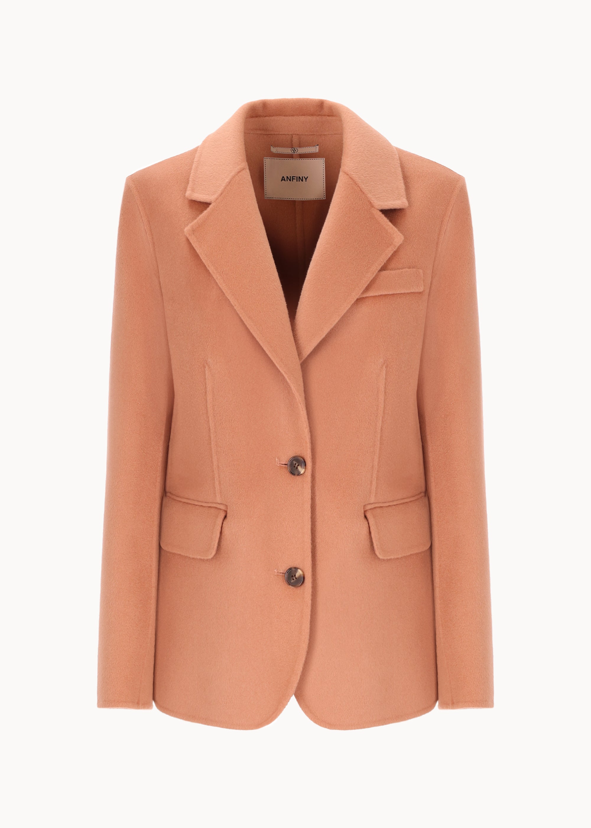 A semi-fitted single-breasted jacket in double linen cloth, offering a refined and elegant silhouette. Unlined with classic double stitching, it features AMF topstitching on the collar, lapels, and darts for a tailored finish.