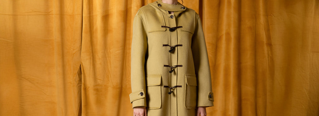 Inspired by a woman who revolutionized women’s fashion, making style accessible, youthful, and innovative, able to influence generations with creativity and bold vision.This double wool Montgomery, with a relaxed fit, blends comfort with character. Applied pockets, frogs, and the hood reinterpret classic details in a contemporary way, while handmade finishes highlight artisanal quality. A versatile garment that celebrates resourcefulness and the ability to innovate with elegance.