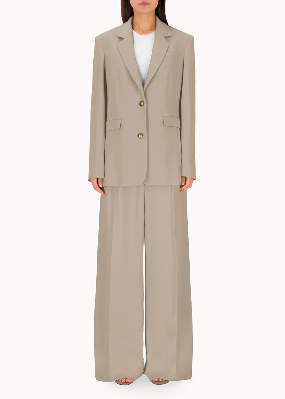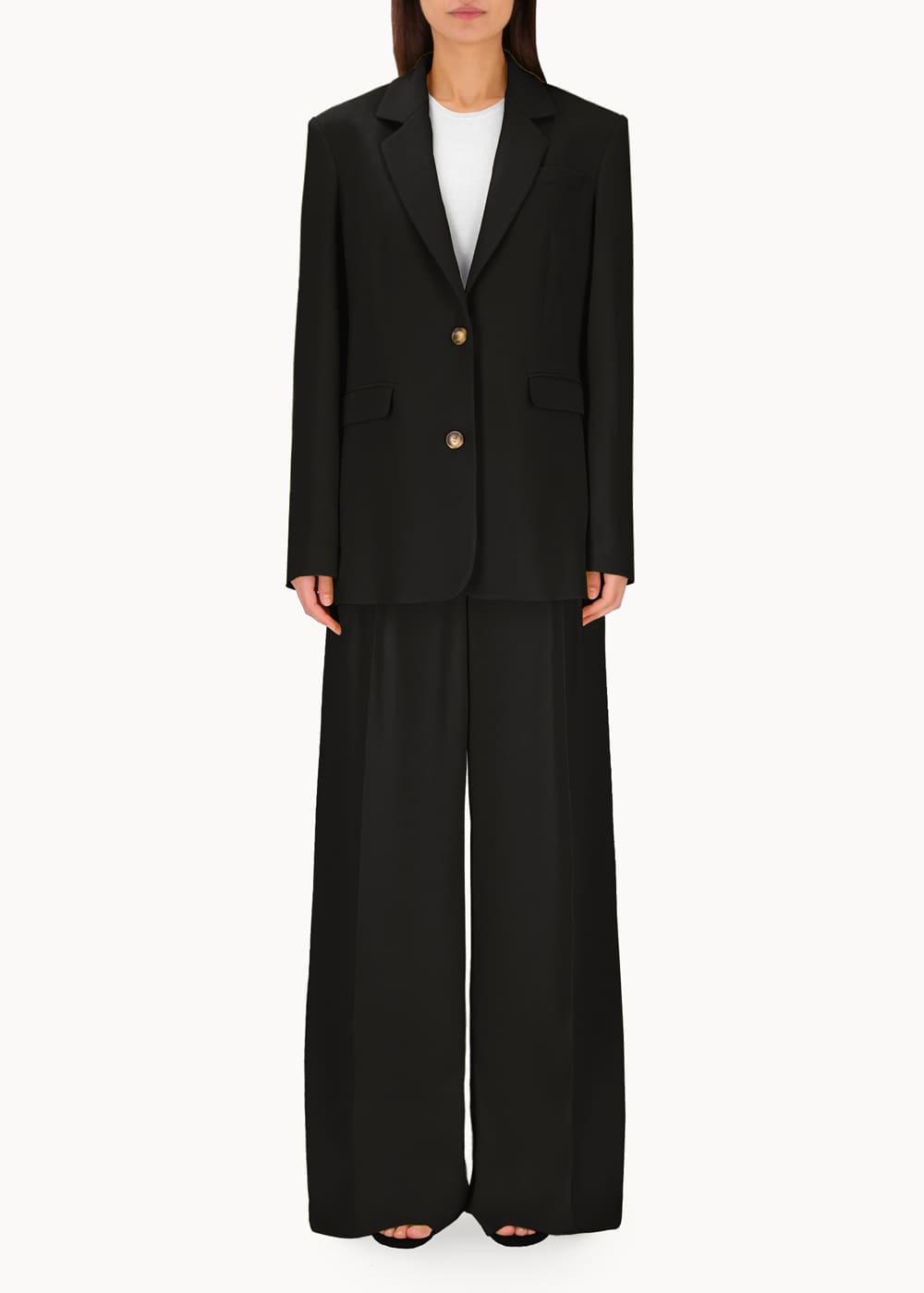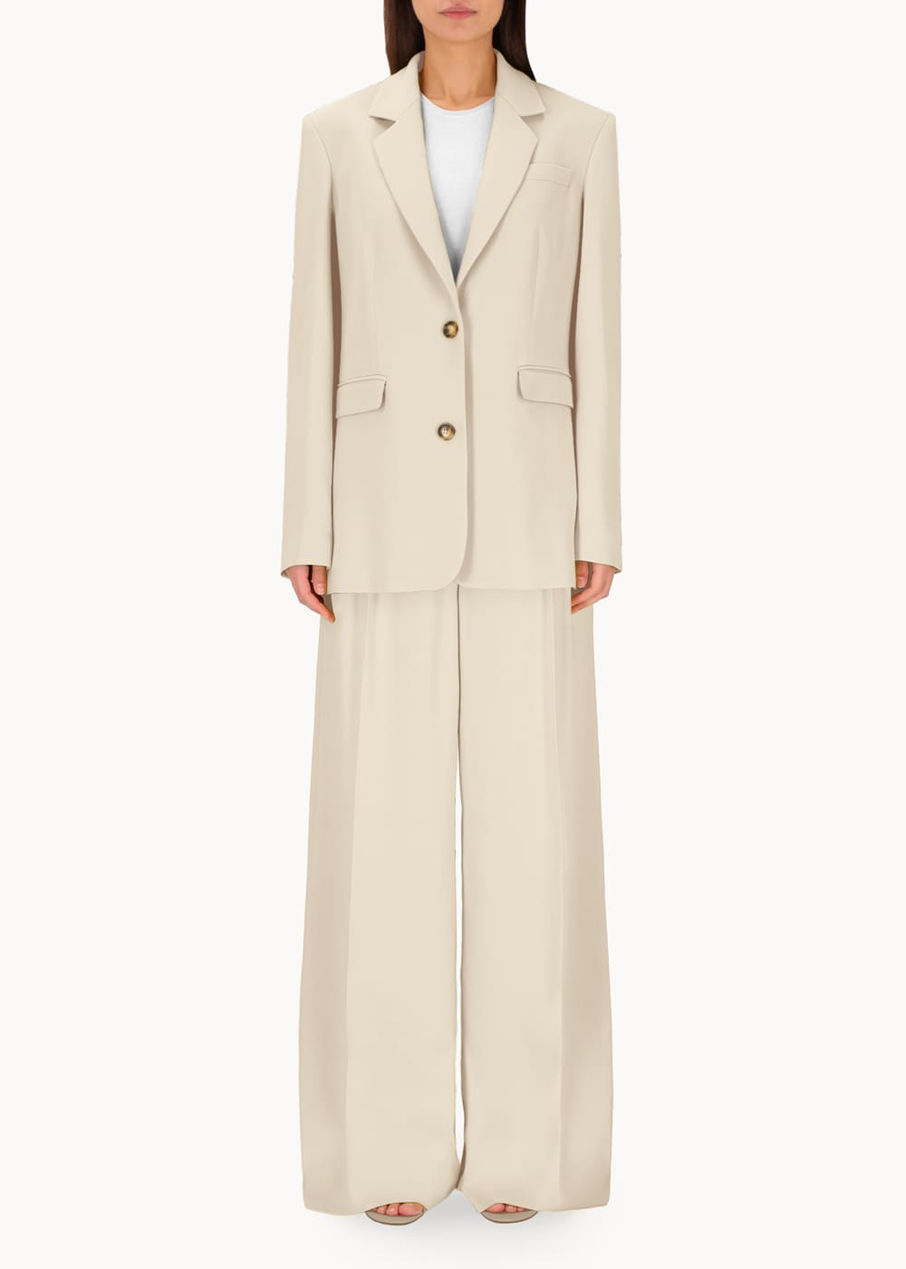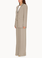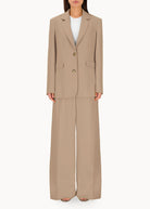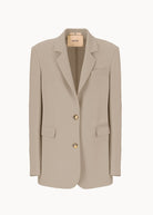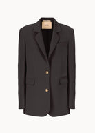 Giacca monopetto dalla linea morbida e oversize, ispirata al taglio maschile e realizzata in viscosa di alta qualità. Questo capo unisce comfort e stile, offrendo un look raffinato e contemporaneo. La sua silhouette oversize aggiunge un tocco di modernità, mentre la scelta del tessuto conferisce un'eleganza versatile, perfetta per molteplici occasioni.