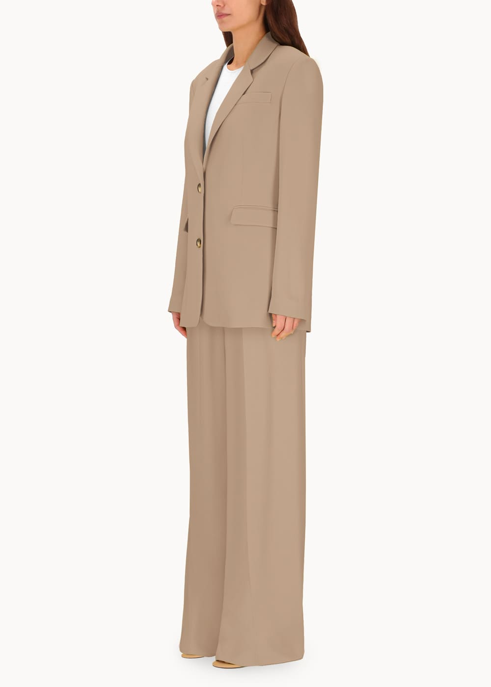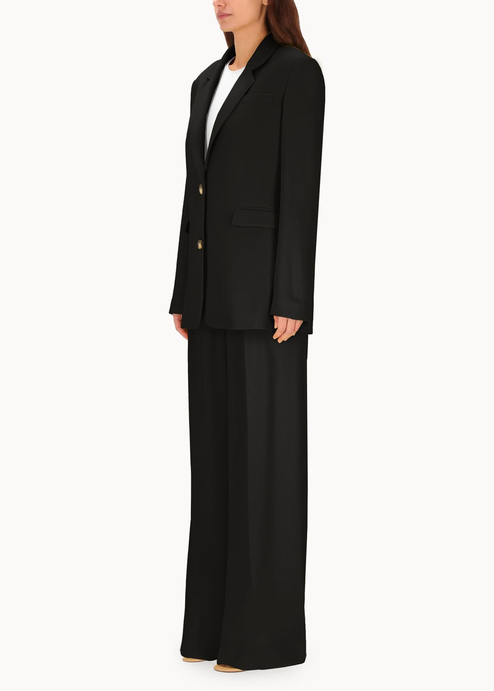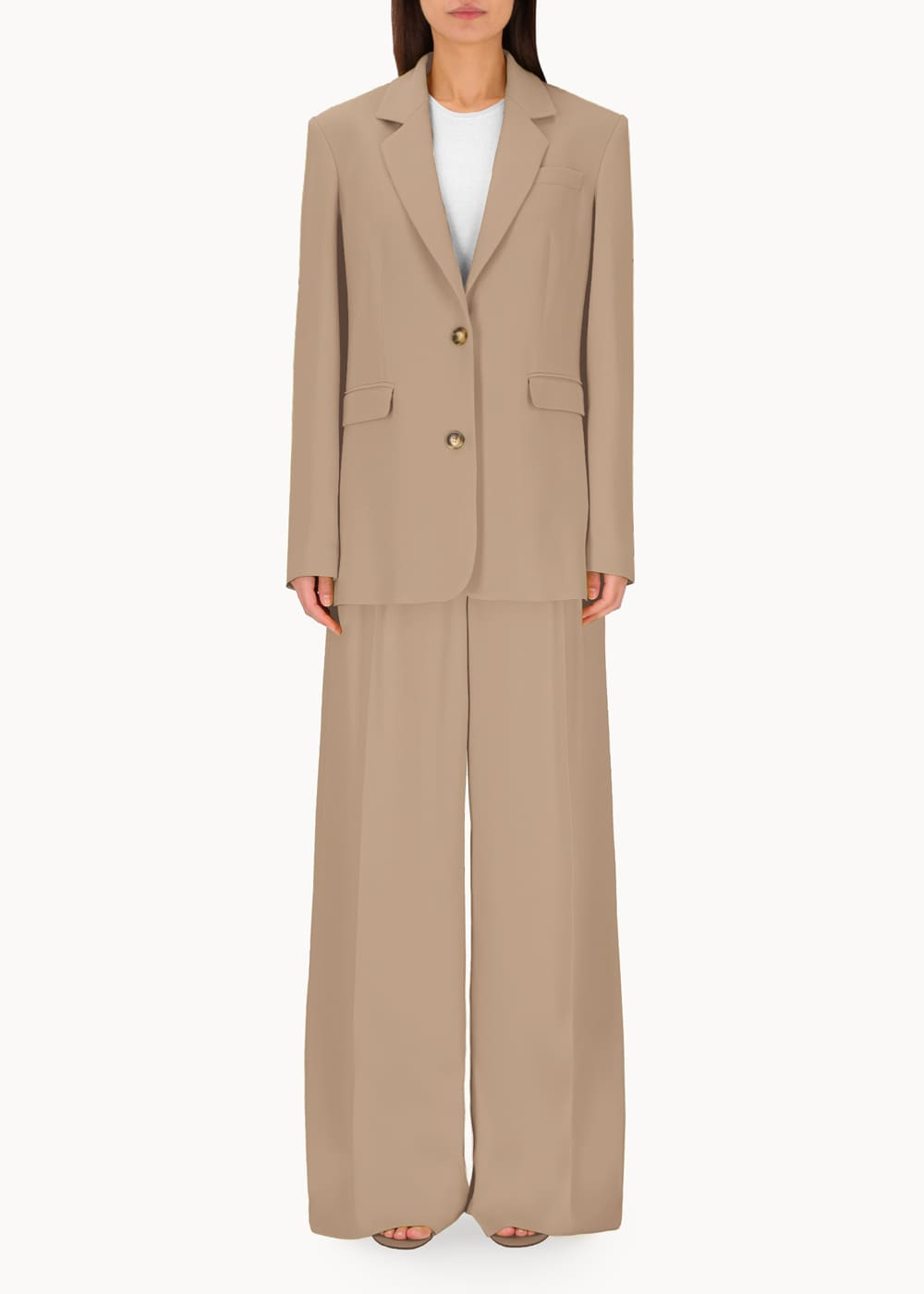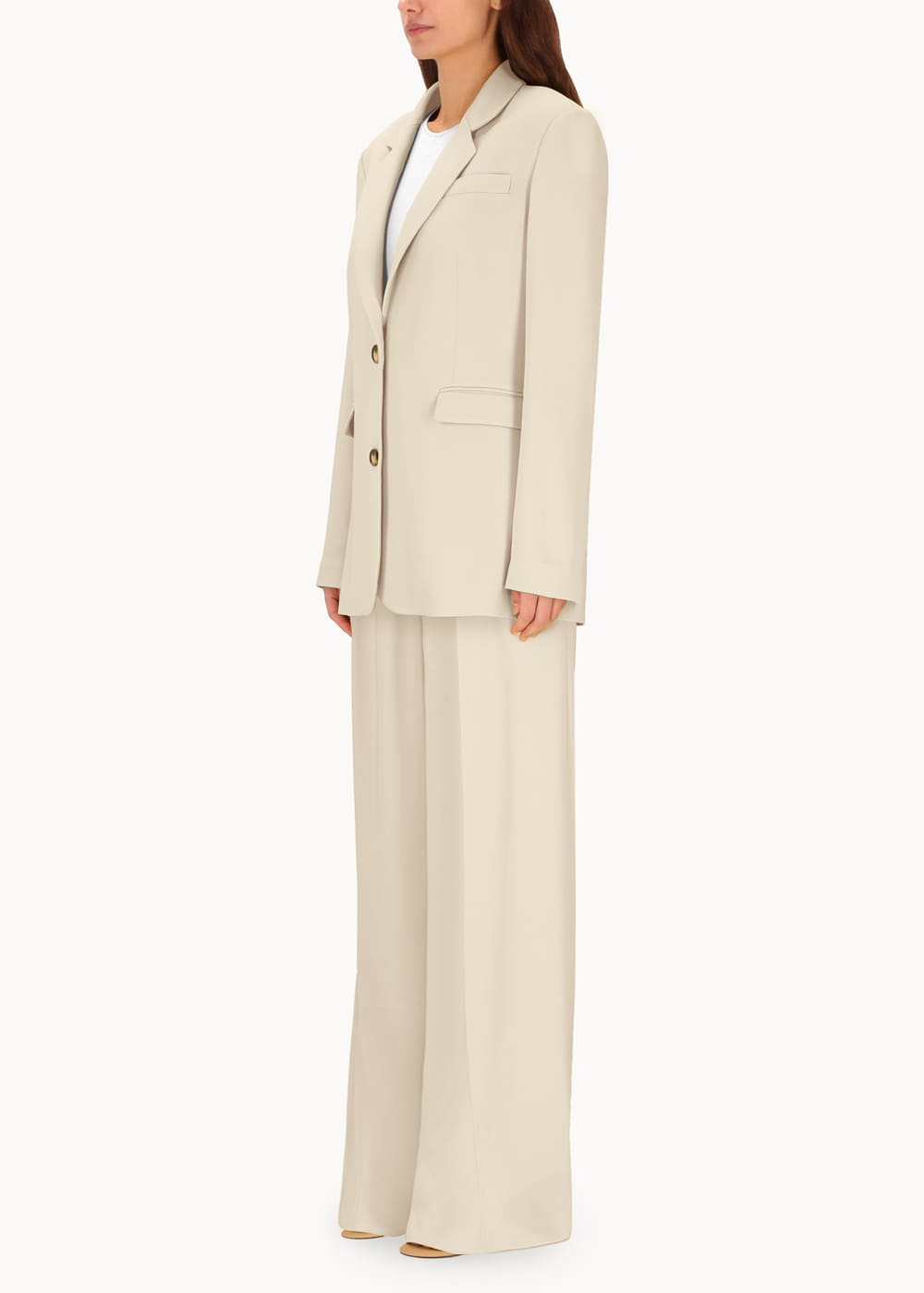 Giacca monopetto dalla linea morbida e oversize, ispirata al taglio maschile e realizzata in viscosa di alta qualità. Questo capo unisce comfort e stile, offrendo un look raffinato e contemporaneo. La sua silhouette oversize aggiunge un tocco di modernità, mentre la scelta del tessuto conferisce un'eleganza versatile, perfetta per molteplici occasioni.
