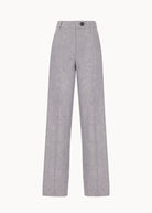 Pantalone maschile con linea dritta e ampia a vita alta. Lunghezza di 110 cm e piega stirata per un look raffinato. Tasche laterali a filetto e tasca posteriore a filetto per un equilibrio perfetto tra stile e funzionalità.