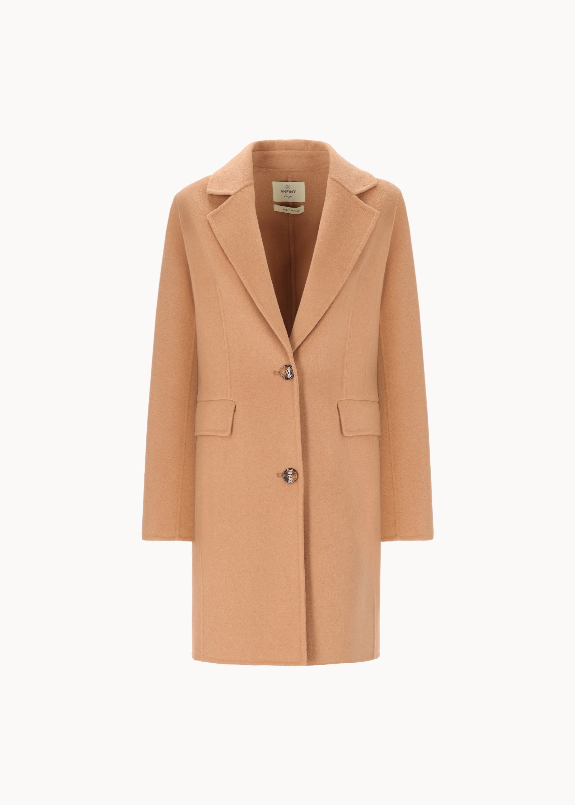 Cappotto monopetto dalla linea slim e dai tagli maschili. Realizzato in panno double di lana, presenta collo e rever piccoli e tasche a patta per una silhouette pulita ed elegante. Sfoderato con rifiniture tipiche del double.