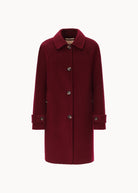 Cappotto monopetto in panno double di lana, dalla linea morbida e leggermente svasata al fondo. Con collo a camicia e rifiniture tipiche del double, propone uno stile intramontabile dalla silhouette rilassata ed elegante.